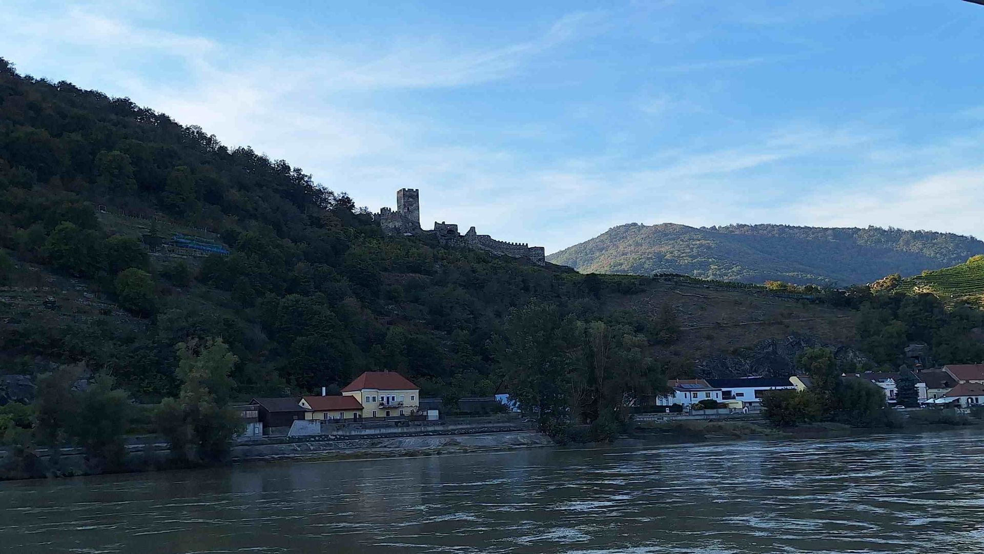 Auch am Parkplatz der Schiffsanlagestelle waren noch Zeichen der Überflutung ersichtlich und erkennbar und wegen der zerstörten elektrischen Anlagen der Parkanlage war die Benutzung des Parkplatzes gebührenfrei. Vom Schiff aus konnte man ca. zwei Stunden links und rechts der sich schlängenden Donau kleine Ortschaften sowie historische Burgen/Burgruinen und sonstige Sehenswürdigkeiten erspähen. In der wunderschönen Stadt KREMS im Herzen der Wachau angekommen konnten wir historische Sehenswürdigkeiten ( Dom , Dreifaltigkeitssäule, Steiner Tor ) sowie Kunst- und Kulturausstellungen besichtigen. Auf der Rückfahrt mit dem Schiff hatten wir einen kurzen Aufenthalt in SPITZ wo wir auf ein anderes Schiff umstiegen. Spät abends bei herrlichem Sonnenuntergang ging es zurück zum Hotel wo das Abendessen bereits wartete.